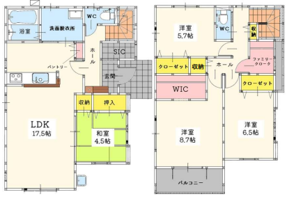 和室4.5畳 1階 LDK17.5畳 1階 洋室5.7畳 2階 洋室6.5畳 2階 洋室8.7畳 2階 |